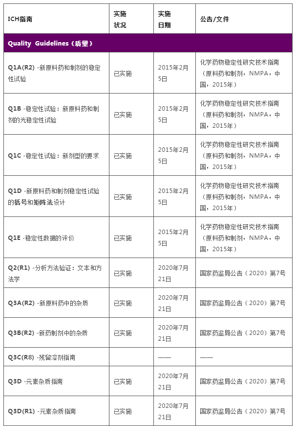 ICH指導(dǎo)原則在中國(guó)NMPA實(shí)施情況
