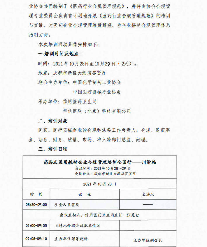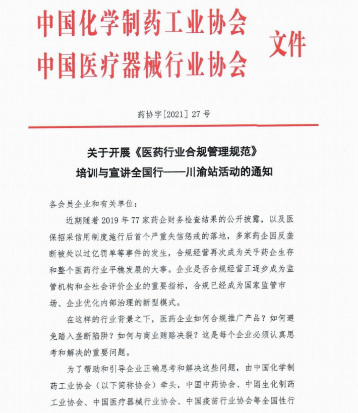 關于開展《醫(yī)藥行業(yè)合規(guī)管理規(guī)范》培訓與宣講全國行——川渝站活動的通知
