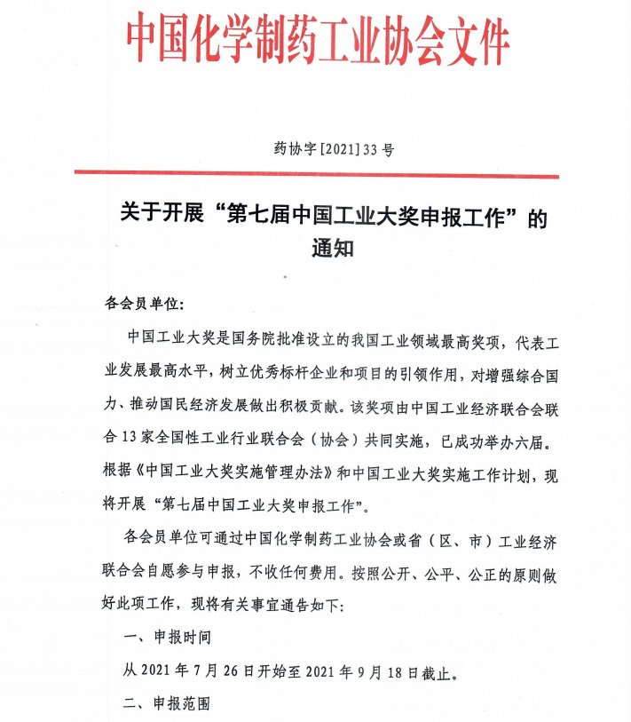 關(guān)于開展“第七屆中國工業(yè)大獎申報工作”的通知.pdf