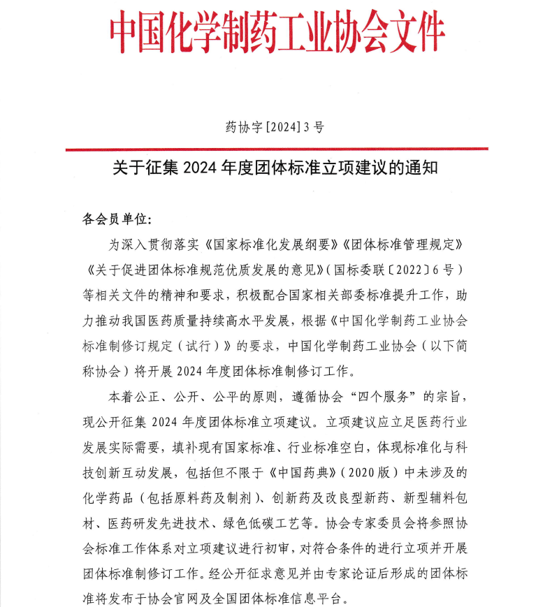 關(guān)于征集 2024年度團體標(biāo)準(zhǔn)立項建議的通知