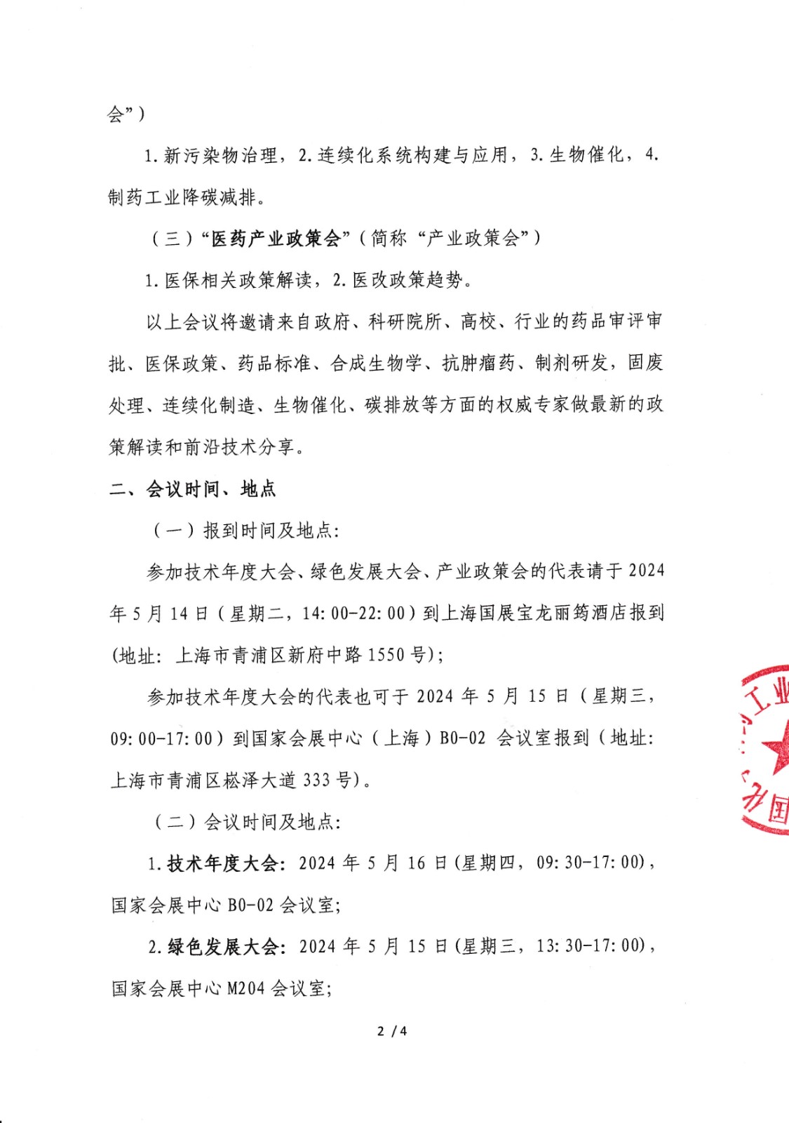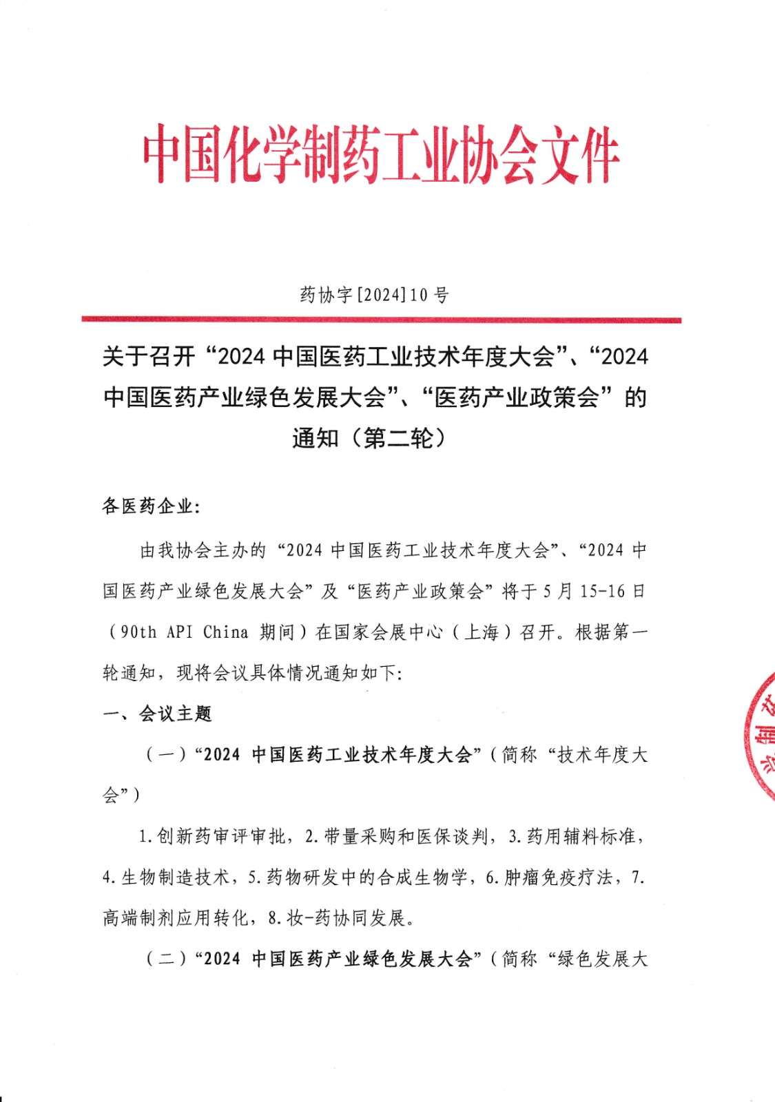 關(guān)于召開“2024中國醫(yī)藥工業(yè)技術(shù)年度大會(huì)”、“2024中國醫(yī)藥產(chǎn)業(yè)綠色發(fā)展大會(huì)”、“醫(yī)藥產(chǎn)業(yè)政策會(huì)”的通知(第二輪).pdf
