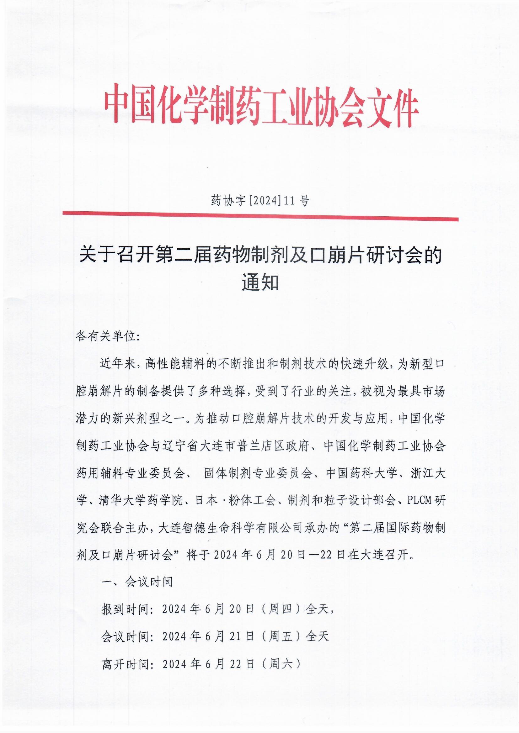 關(guān)于召開(kāi)第二屆藥物制劑及口崩片研討會(huì)的通知