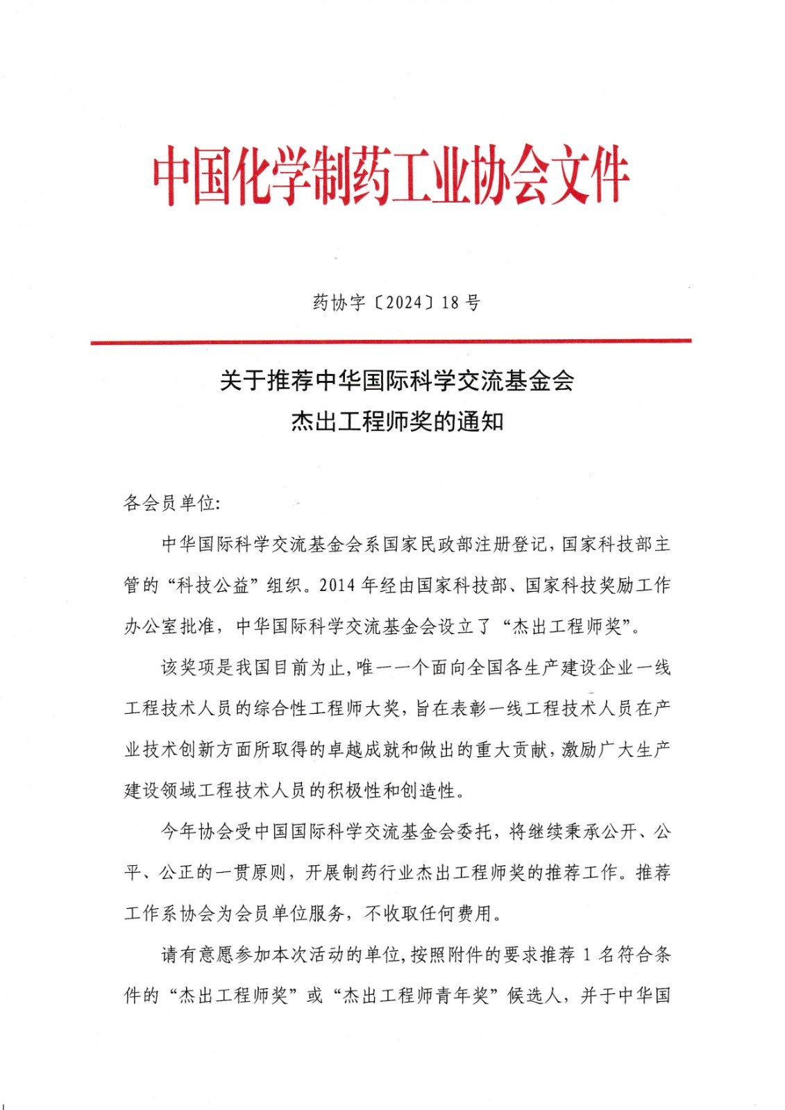 關(guān)于推薦中華國(guó)際科學(xué)交流基金會(huì)杰出工程師獎(jiǎng)的通知