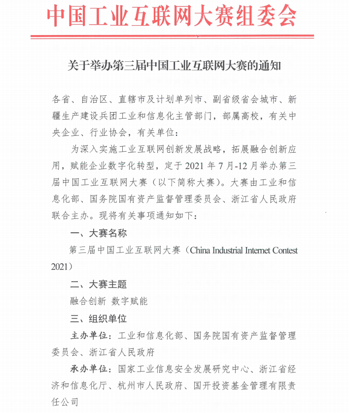關(guān)于舉辦第三屆中國(guó)工業(yè)互聯(lián)網(wǎng)大賽的通知