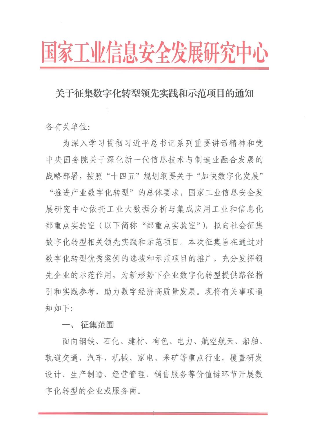 關(guān)于征集數(shù)字化轉(zhuǎn)型領(lǐng)先實(shí)踐和示范項(xiàng)目的通知